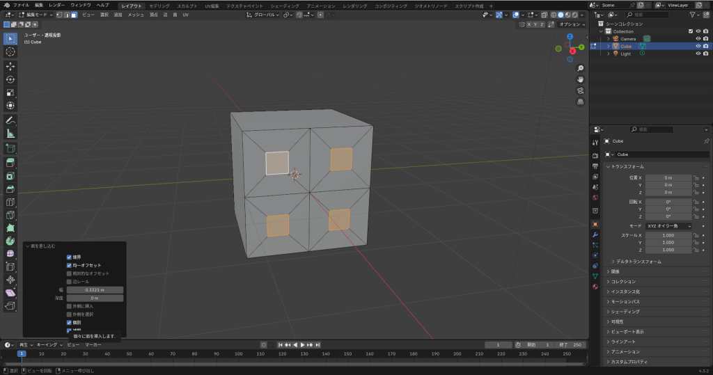 Blenderのコツ : 複数の面の中に同時に面を生成したい