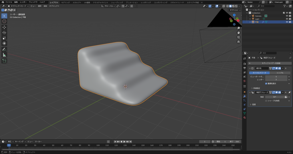 そうすると、以下の画像のようにすべてのカドが丸くなり、緩やかな坂のようになってしまいました。