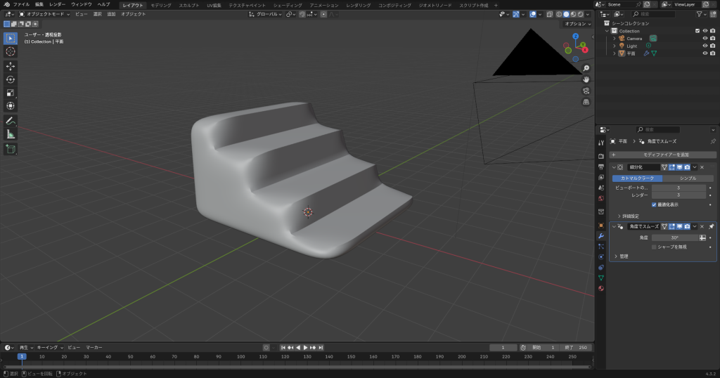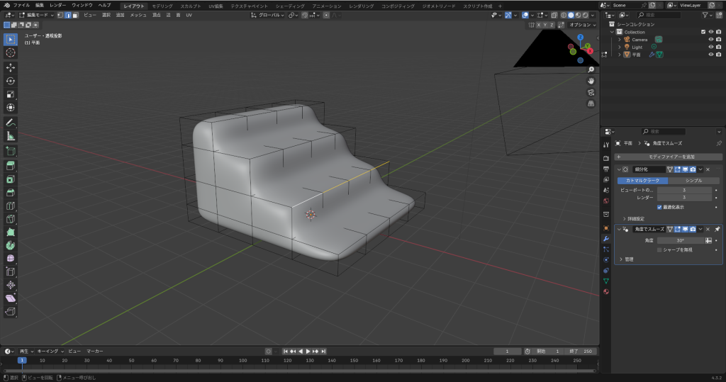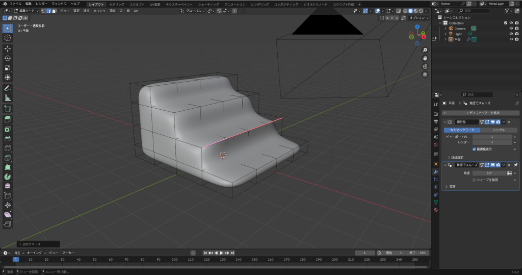 今回は、階段の各段をはっきりさせるために複数のカドをクリースによって調整しました。